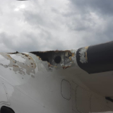 a storm and underwent severe turbulence and damage. All passengers and crew exited the aircraft without injury but the aircraft