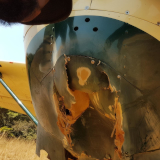 subsequently dragging on the oleo which led to its collapse and the propeller hitting the ground approximately on the runway centre line. Everyone